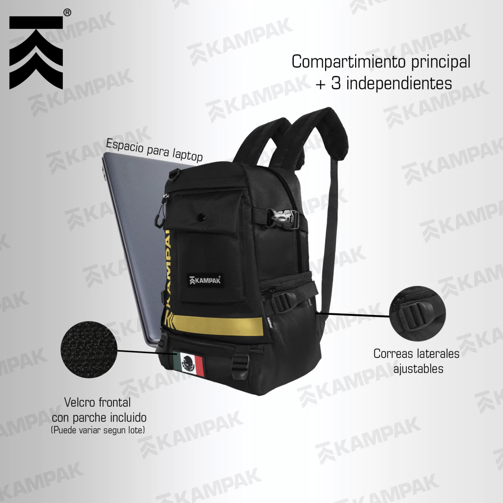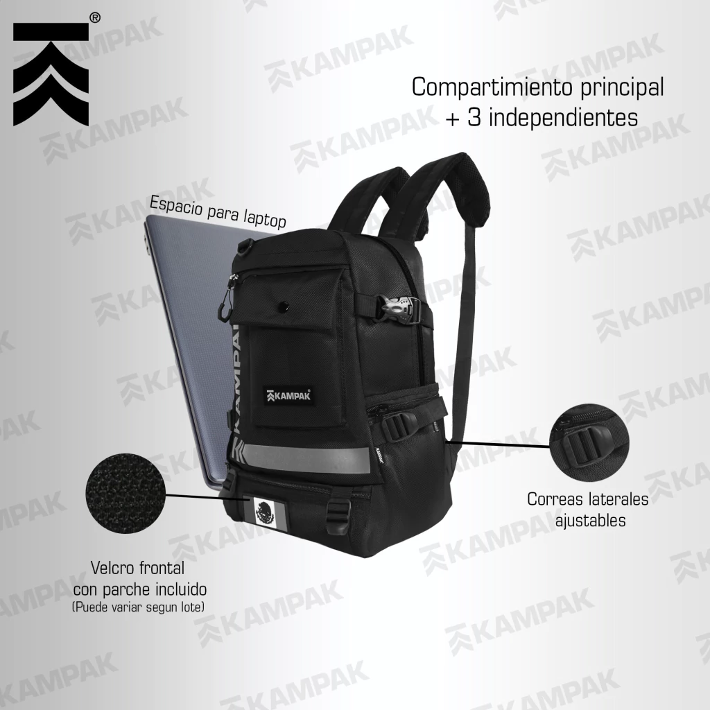 *Cabe una laptop de hasta 17". NO tiene compartimiento dedicado.