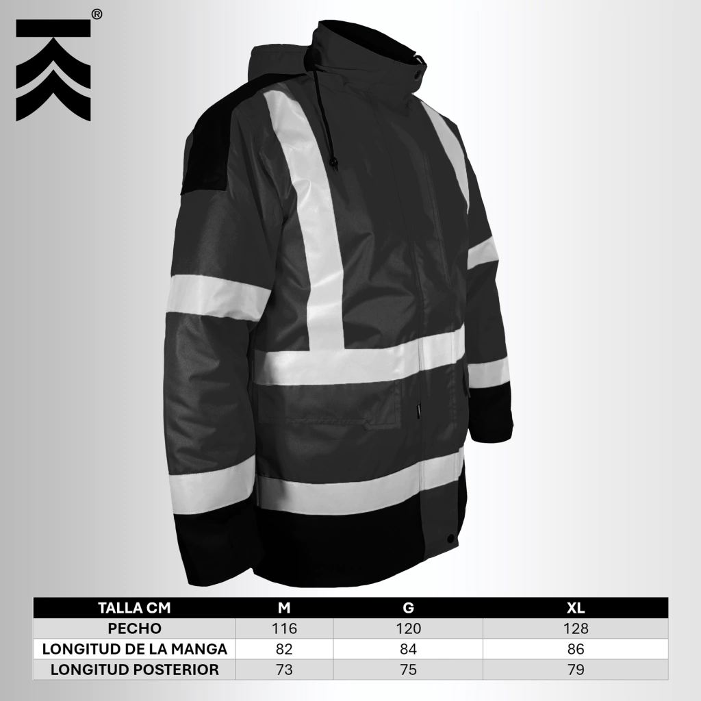 *Capucha removible, cierres y botones de ajuste.