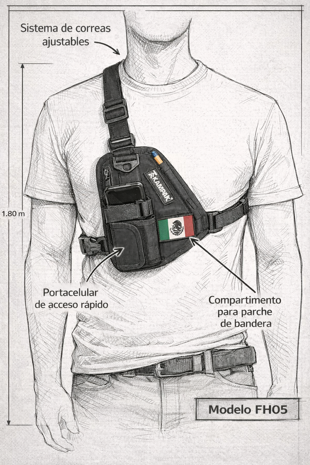 Multiple pockets + front phone holder |