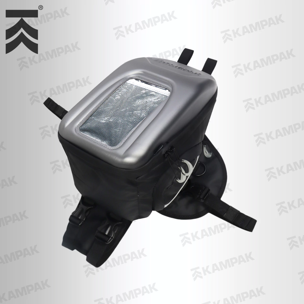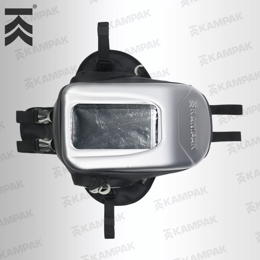 Motorcycle Tank Bag Hard Shell Waterproof – KAMPAK | Fuel Tank Backpack with Side Pockets & Reflective Straps