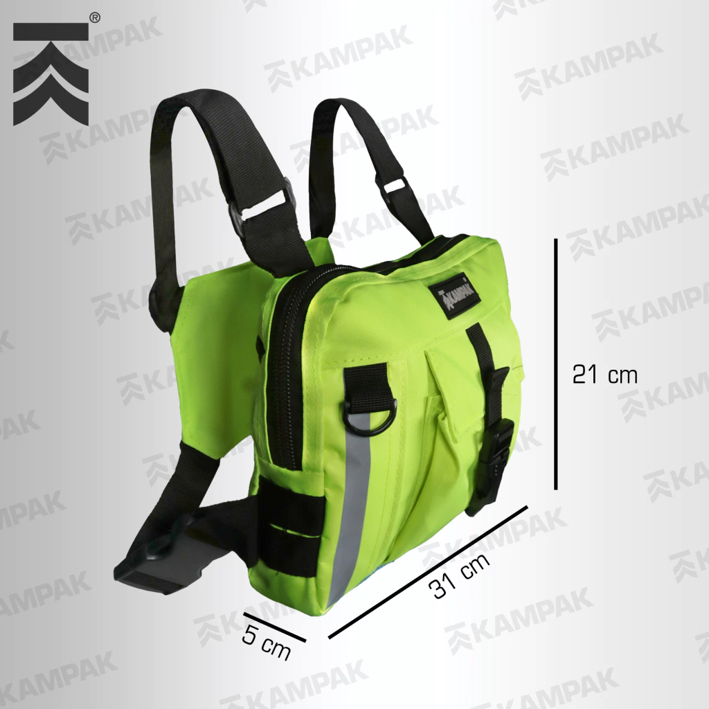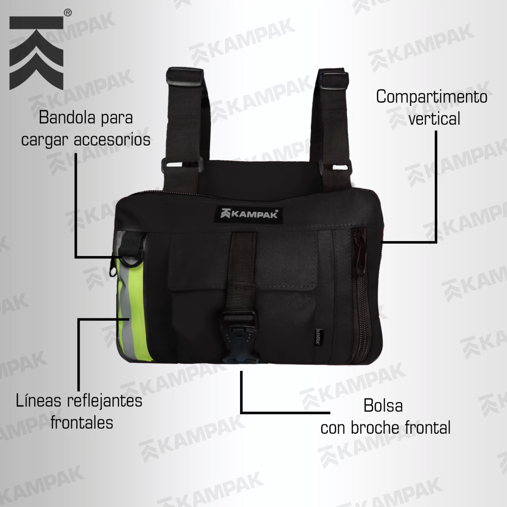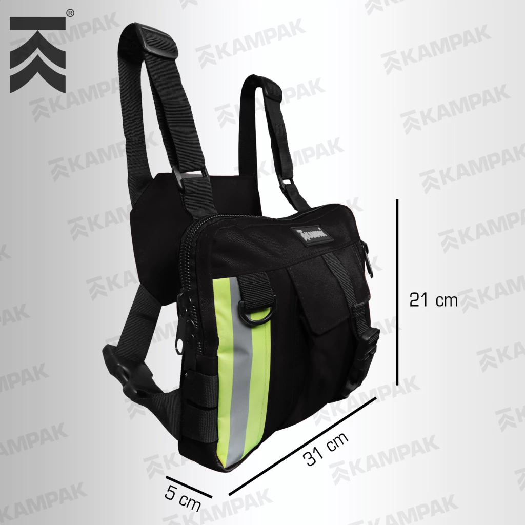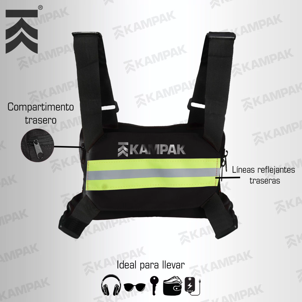 KAMPAK -Street Wear Reflective Chest Bag Kampak NV53 *Cinta Reflectiva Frontal y Posterior para mayor visibilidad. *Ideal para usar en motos, bicicletas o situaciones de mayor visibilidad. *Talla única con straps de ajuste laterales y frontales. *4 compartimientos independientes. *Cierre grueso. *Broches de seguridad. *Divisiones interiores. *Bandola para colgar llaves. *Espacio frontal para cajetillas, celulares, encendedores, monedas, etc. --Las piezas KAMPAK originales llevan el logo en CAUCHO, evita imitaciones bordadas. --Producto en FULL. Mercadolibre gestiona el envío de tu compra desde el almacén. Tu compra va asegurada.